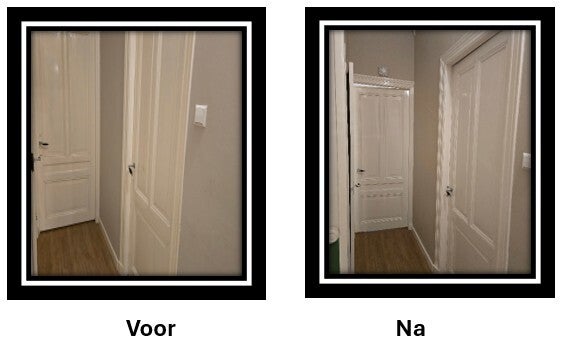 De deuren zaten vol gaten. Na een opknapbeurt konden de bewoners weer met veel plezier deze verdieping betreden.