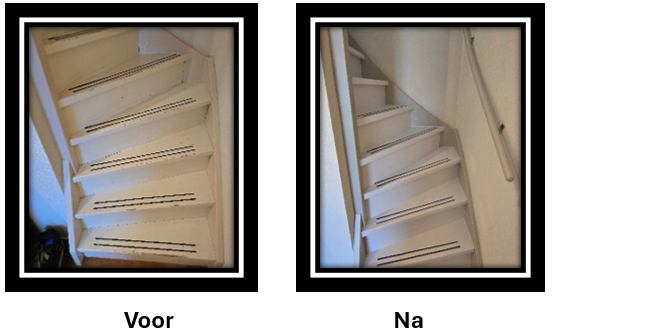Een mooie klus: van een trap met gaten en butsen weer een mooie en frisse opgang gemaakt.